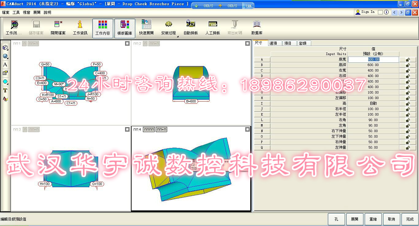 武漢華宇誠(chéng)數(shù)控科技有限公司經(jīng)過反復(fù)試驗(yàn),成功研制出了通風(fēng)管道專用數(shù)控等離子切割機(jī),配合專用的風(fēng)管切割軟件,自動(dòng)生成圖紙、導(dǎo)出加工程序。更加適應(yīng)風(fēng)管展開切割需求,功能更適應(yīng)風(fēng)管展開切割、操作更加便捷、成本進(jìn)一步降低,讓利于客戶。操作人員所需要做的就是在軟件中選擇所需要的風(fēng)管樣式,輸入所需要的尺寸,然后調(diào)出加工程序進(jìn)行切割就可以了。既方便快捷、又精確實(shí)用。